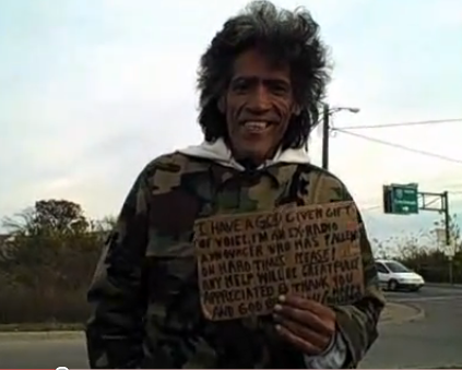 La historia empieza cuando un reportero de Columbus Dispatch se encontró a Ted Williams, un indigente, en la carretera interestatal. Williams sostenía un cartel que decía que era un ex locutor de radio que había vivido tiempos difíciles.